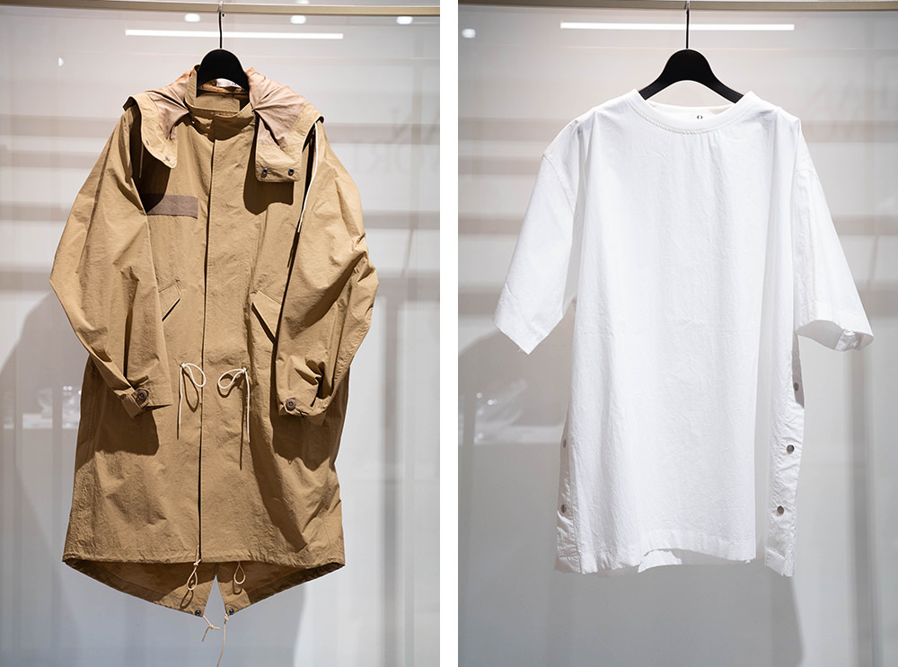 독자 개발한 기능 소재로 기본 디자인을 추구하는 「g.sakayori」에는 빅 실루엣의 유니섹스인 아이템이 풍부.양쪽에 스냅 버튼의 슬릿이 새겨진 풀오버는 세탁 무너지기 어려운 천을 채용.테일러 도 재킷도 집에서 세탁 가능.소매의 스냅 버튼을 떼면 노스리브가 되는 가벼운 한 장.워터프루프 브루존, 폰초, 발수성과 속건성이 뛰어난 모즈코트는 아웃도어에서도 편리하다.