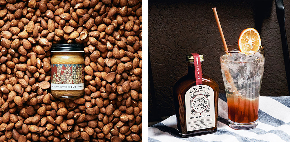 (오른쪽)콜라넛이나 대추콩을 비롯한 전 세계의 향신료나, 일본 허브·국산 감귤류로 만들어진 원조 천연 크래프트 콜라 「토모 콜라」의 것과도 콜라의 소.