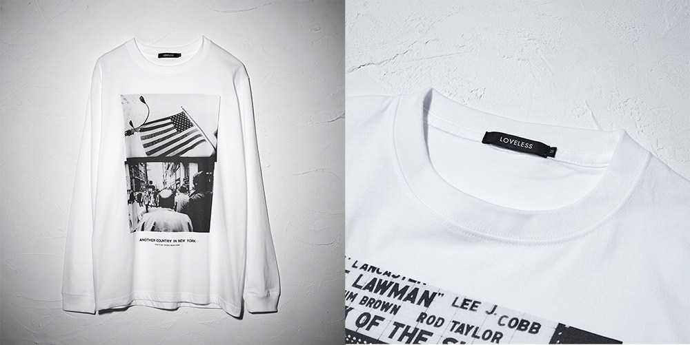 도쿄를 중심으로 세계 도시의 뒤편을 계속 파악해 온 일본 사진계의 리빈그레젠드, 모리야마 다이도'LOVELESS'에서는 그런 모리야마 씨와의 콜라보레이션 아이템을 발표한다.사용되는 것은 1974년에 발표된 NY의 거리 사진을 정리한 "또 하나의 나라 뉴욕"에서 발췌.모리야마씨다운 모노크롬으로 잘라낸 뉴욕의 풍경 사진을 LOVELESS가 콜라주이렇게 해서 태어난, 오리지널 그래픽을 사용한 아이템이 되고 있다.모리야마 다이도와 LOVELESS라는 두 개의 강렬한 개성은 어떤 화학반응을 일으켰을까.그 눈으로 확인해 주었으면 한다.