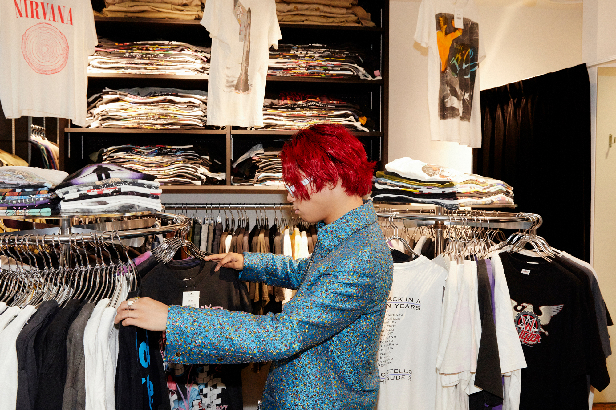 방대한 양의 밴드 티셔츠가 라인업.