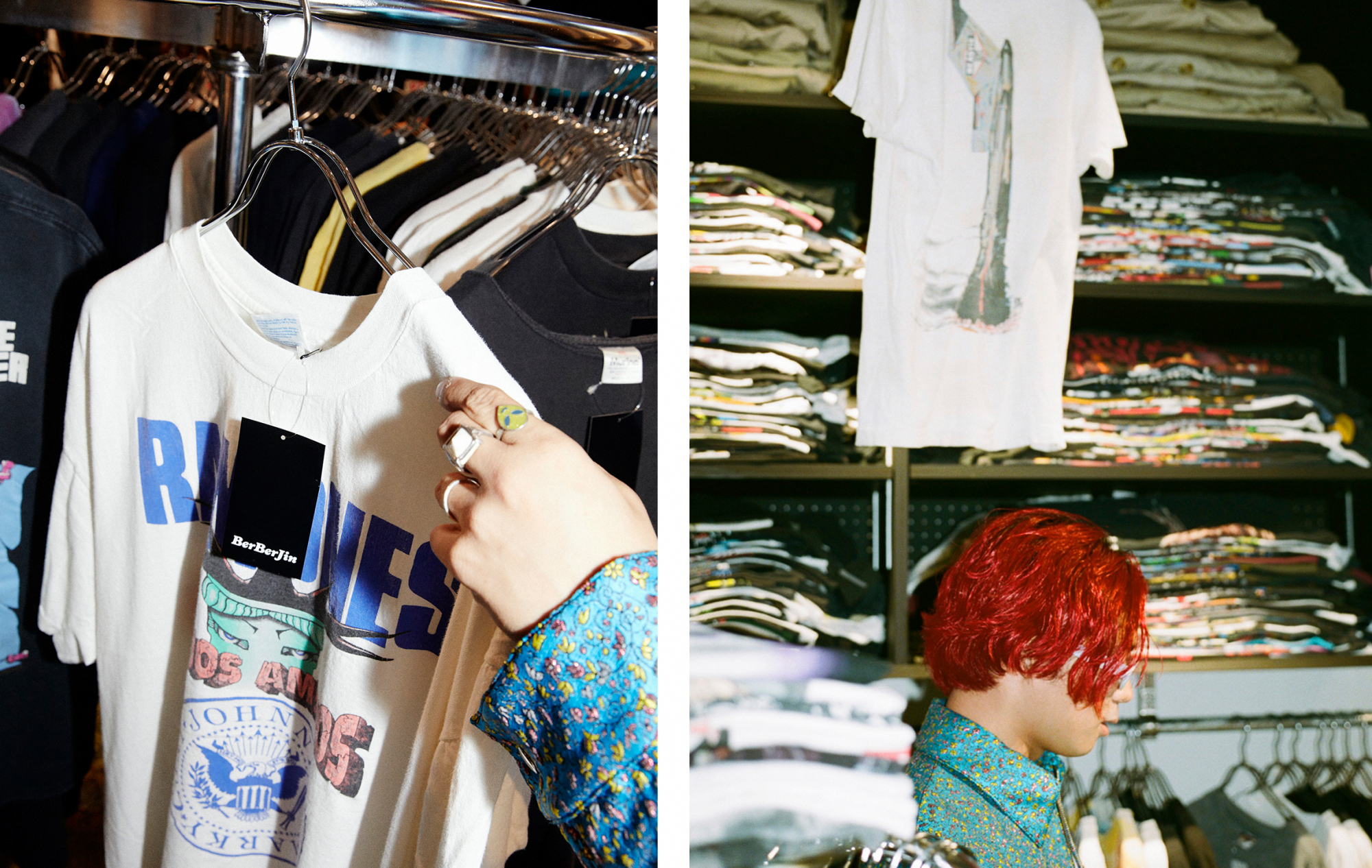 “하라주쿠의 BerBerJin에서 자주 쇼핑을 해요.마음에 든 한 벌을 찾아내는 것이 레코드 가게에 가서 텐션이 부티 오르는 한 장과 만나는 감각과 함께이기 때문에 좋아한다"고 말하는 레이지 씨시부야 PARCO점은 하라주쿠점과는 색다른 물건이 특징.셀렉트의 핵이 되는 것은 이 가게를 위해서 모아진 빈티지&유즈드의 밴드 티셔츠다그 이외에, HIPHOP나 JAZZ 아티스트의 T셔츠 등으로 점내가 채워지고, 나아가 시부야 파르코 점 한정으로 숍 오리지널 브랜드 「TOBEANNOUNCED」도 전개.밴드 티셔츠라고 듣고, 레이지씨의 식지가 움직이지 않을 수 없다.빨리 한 장씩 바라본다.셀 수 없는 티셔츠 안에서 신경이 쓰인 것은 미국의 밴드 라몬스가 해체되기 전에 발표한 마지막 앨범 '스페인어 Adios Amigos!'의 투어 T.「라몬즈는 아버지가 좋아해서, 아기 때부터 MV를 볼 수 있었습니다.그래서 라몬스는 나에게 울트라맨이나 전대물건과 다름없는 영웅 같은 존재"라고 말했다.