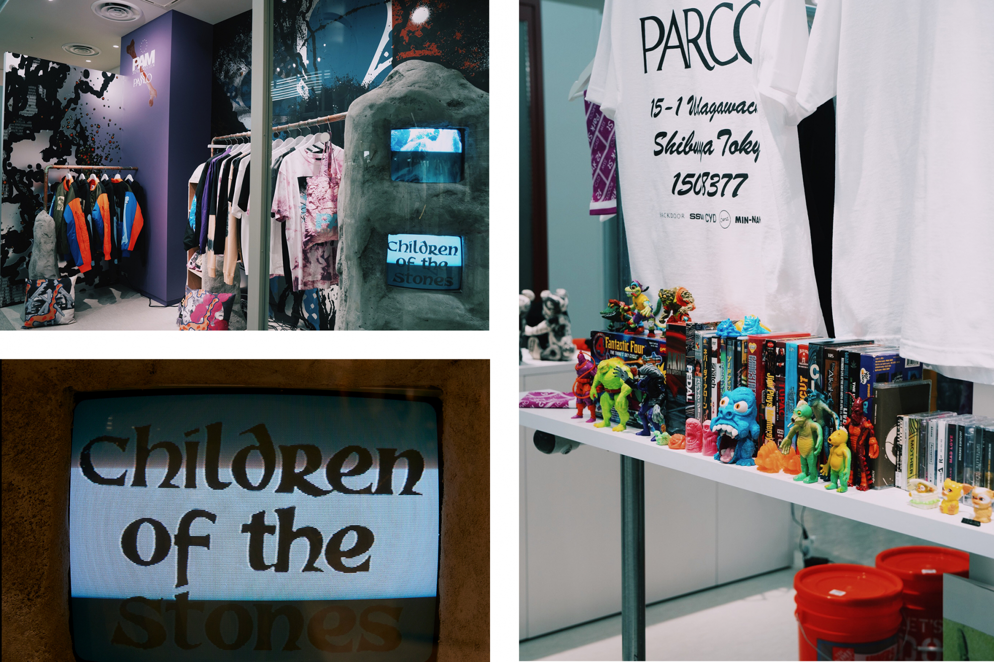 레이지가 GEYSER PARCO 내에서 발을 멈추게 한 숍은 SSW(시부야 소셜 웨이브)한정 콜라보레이션 의류도 판매되어 전세계에서 모은 레코드나 카세트 테이프, 토이 등도 늘어선다.POP UP SHOP를 적극적으로 개최하거나, 스트리밍 가능한 DJ 부스에서 국내외 아티스트가 플레이할 예정입니다.현재는 이케노우에의 「MIN-NANO」와 요요기우에하라의 「Backdoor」, 하라주쿠의 「Bend Tokyo」의 3개 점포에 의한 숍 「CYD」가 팝업 숍을 개최중."카세트라든지 장난감이 독특하고, 80년대의 SF 잡지도 있어서 장난감이 느껴진다"고 레이지씨도 관심을 보였다.GEYSER PARCO의 숍은 1년 내내 몇 차례 상점이 바뀌기 때문에 올 때마다 새로운 발견이 있을 것 같다.